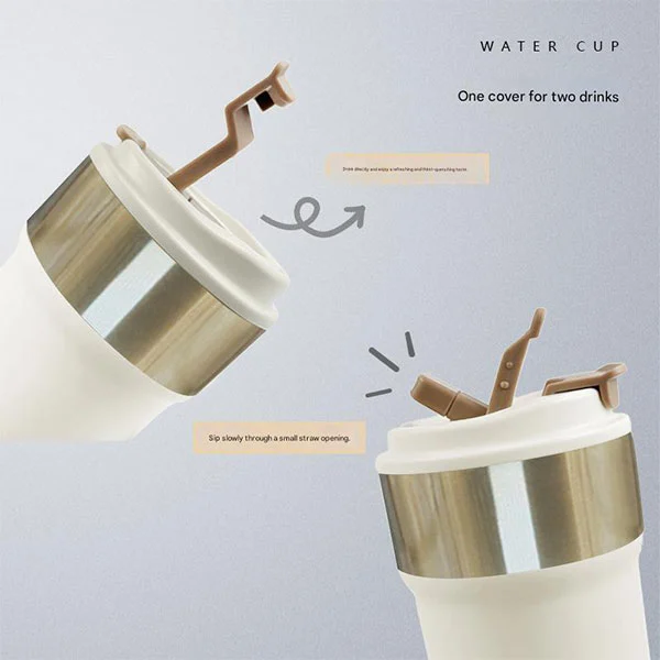 17oz Travel Tumbler är utrustad med ett dammskydd för att förhindra att små damm, insekter och annat skräp faller in under daglig användning. Den har också en dubbel drinkdesign.