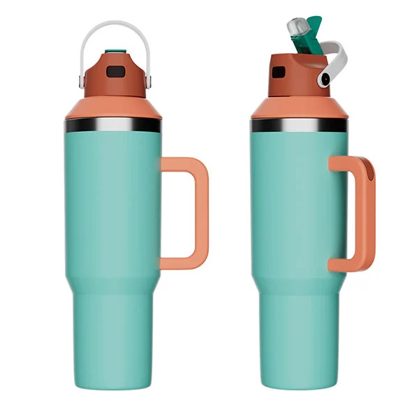 Stort handtag kan enkelt ta 40oz rostfritt stålvakuumisolerade tumlare upp.