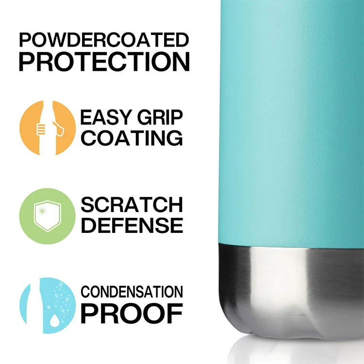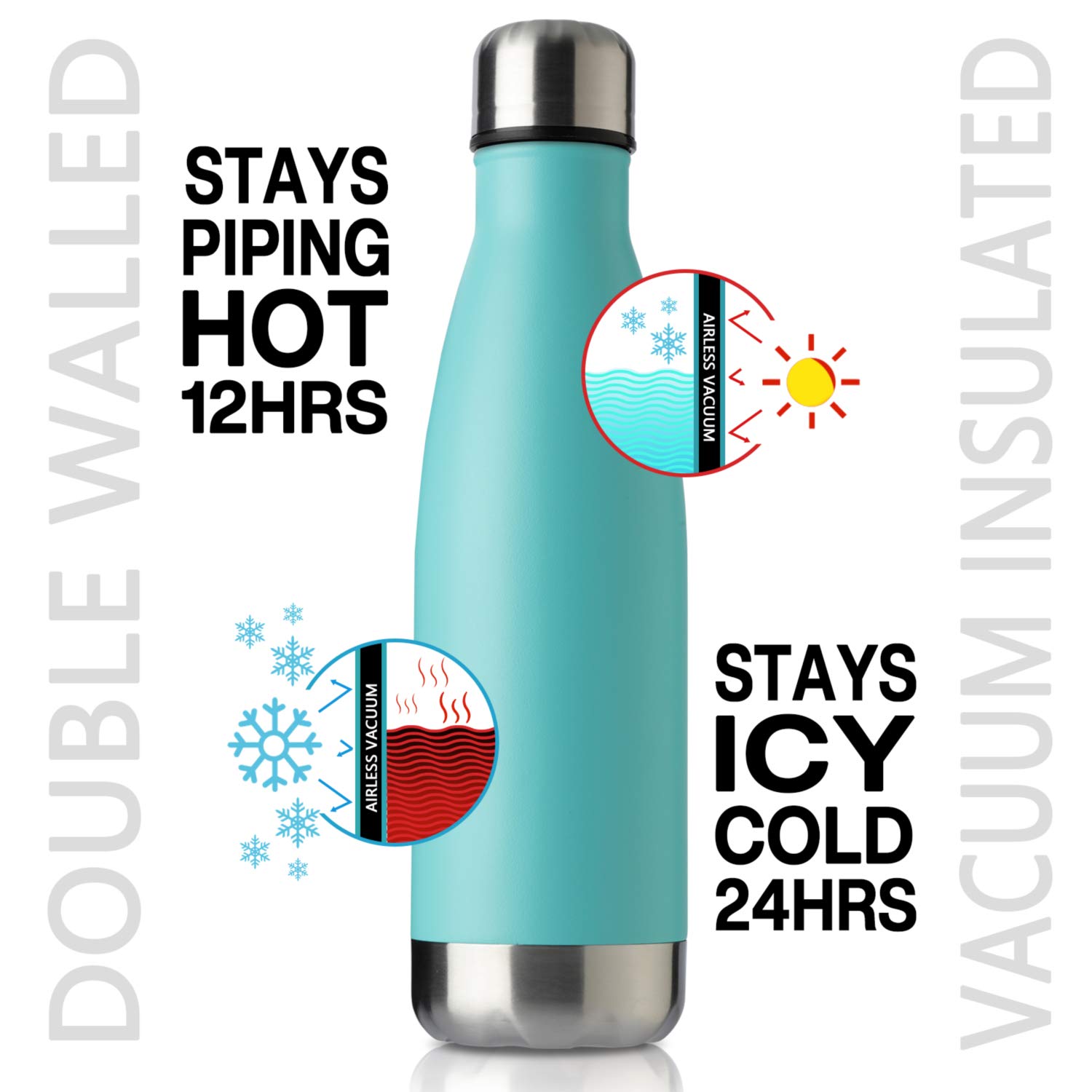 - Vattenflaskan är dubbelväggig och vakuumisolerad, vilket håller din favoritdryck varm eller kall i timmar.