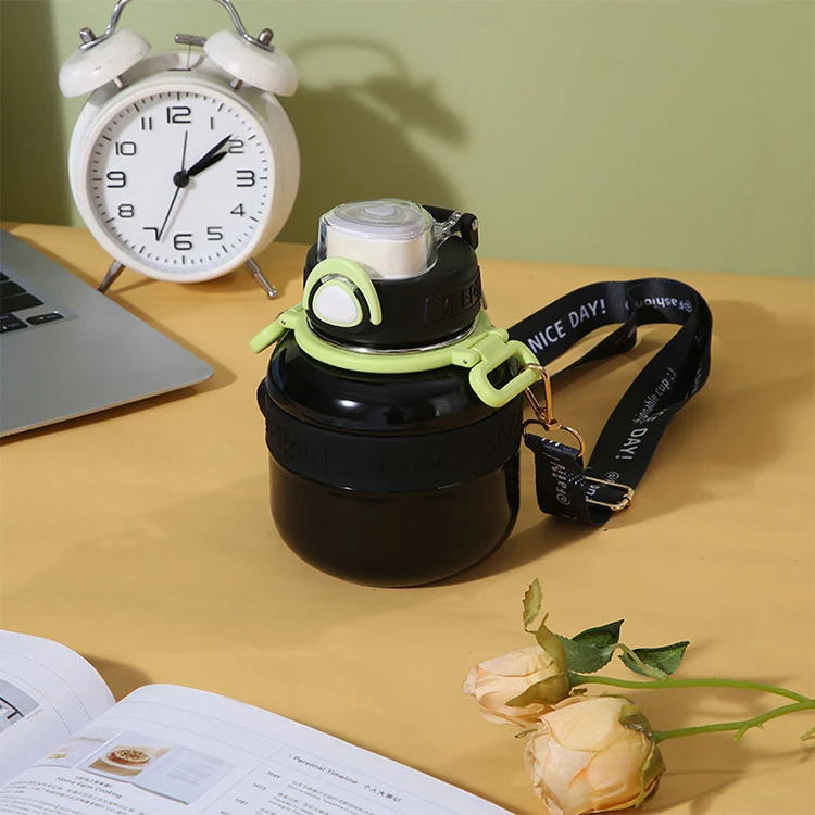 Ett vakuumskikt implementeras mellan dubbla väggarna för att säkerställa effektiv värme och kall retention. Locket är utformat från helt nytt BPA-fritt PP-material. Den har en omfattande tätning för att förhindra läckage. När det fjäderbelastade locket öppnas, visas ett doldt halm med en liten prick som, när den pressas, automatiskt dyker ut halmen.