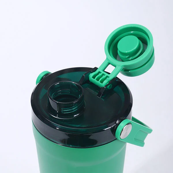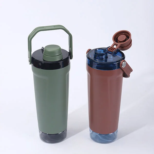 Du kan ta med dig vår shakerflaska i rostfritt stål när du tränar. Den har ett förvaringsfack för proteinpulver, och du kan fylla på din näring i tid efter att du har tränat