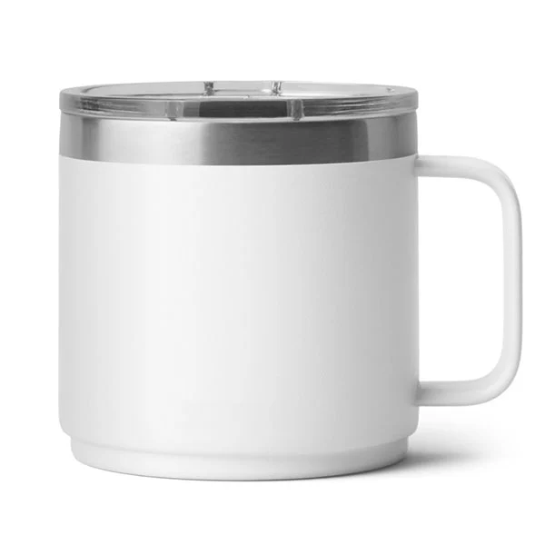 De14 oz rostfritt stål kaffemuggKroppen är belagd med plastpulver, som är fast, smutsbeständig och säker för diskmaskiner.